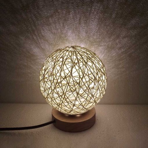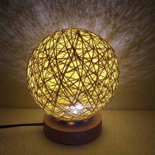 Romantic Bedside Led Desk Lamp Rattan Ball Led Table Light Yellow/Gold/red dream lighting.
